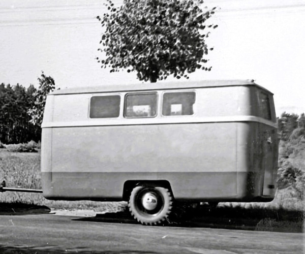 Прицеп-дача получился интересным – четырёхместным, с кухонным уголком, столиком и газовой плиткой с баллоном. Но весило это цельнометаллическое творение около тонны, так что проект признали неудачным – та же «Победа» тянула такой прицеп с большим трудом.